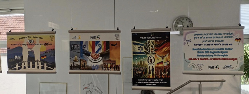 Die Jugendlichen haben zur Feier von 60 Jahren deutsch-israelische Beziehungen Plakate gestaltet. Dazu passt, dass der Austausch zwischen Kiryat Motzkin und dem Landkreis Haßberge seit 40 Jahren besteht. Das hat auch viel mit Memmelsdorf zu tun, denn der Schüleraustausch war einer der Anstöße, den Lernort Memmelsdorf zu verwirklichen. Deshalb zeigen wir die Ausstellung in der Synagoge in Memmelsdorf. Die Schüler haben die Plakate mit Blick auf die Beziehung zwischen Israel und Deutschland gestaltet – von der schmerzhaften Vergangenheit des Holocaust bis hin zu einer Zukunft der Partnerschaft, des Verständnisses und der Hoffnung. Sie wurden gebeten, die Werte Frieden, Freundschaft und Erinnerung durch Farben, Symbole und Formen zum Ausdruck zu bringen.