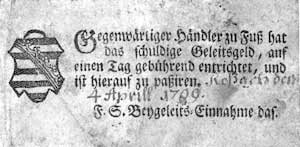 Since the time of the Carolingians, Jews were under the sole protection of the sovereign, who guaranteed their personal safety, that of their property and of their religion. In time, the right of patronage was also conferred on knights of the empire and on towns. They granted what was known as “letters of protection” to individual Jews or Jewish communities, providing them with temporary right of establishment, in some cases including a trading licence. The letter of protection was valid for the holder, his family and servants. In return, annual “protection money” payments and further levies on specific occasions were demanded. On the death of the holder, the protection passed to the widow; children of the age of majority required a new letter of protection. If the patron died, the letters would generally be deemed invalid and were not always renewed by the new territorial ruler. “Protected Jews” became an important source of income, particularly after the devastation of many regions during the Thirty Years’ War. By establishing Jewish settlements, lesser territorial rulers could demonstrate their independence from larger towns or dioceses, for example, on whose territory Jews were still unwelcome.