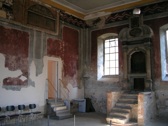 Zwischen der Fertigstellung 1729 und der letzten Renovierung 1925 sind im Hauptraum sieben verschiedene Wand- und fünf verschiedene Fassungen der Flachdecke nachweisbar. Die letzte Wandgestaltung zeigt weinrote, weiß abgesetzte Kassetten auf einem blaugrauen Hintergrund, die durch ein Zick-Zack-Fries abgeschlossen werden.